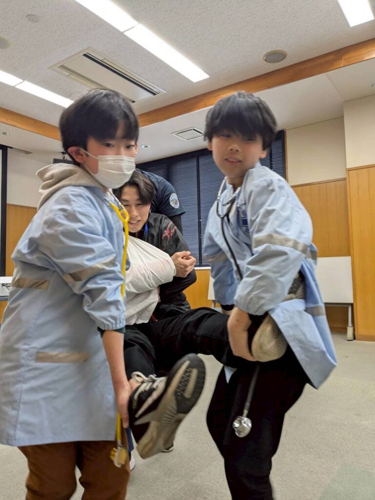 また、今回はケガをして不安になっている人の気持ちを想像しながら、不安を取り除く声掛けを学び思いやる気持ちを育みました。
